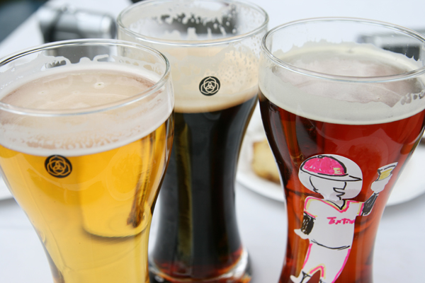 COEDOは全部で5種類。さらに、時間・数量限定でそれぞれの「無濾過」を味わうことができるという。タンクから直接汲み取った酵母がそのまま入っているもので、職人さんの試飲のときしか味わうことができないものだそうだ。15時スタート直後、スタンダードな「伽羅」と黒ビールの「漆黒」の二種類の「無濾過」が販売されていた。黒ビール好きの私は漆黒をチョイス、監督さんととりさんは伽羅をチョイス。