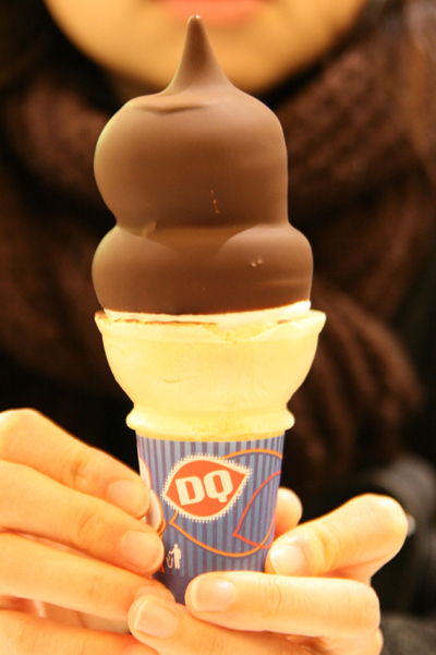 スカイトレインに乗る前に、先ほどのフードコートでデイリークイーン(Daily Queen)のソフトクリームを食べる。DQ。ほんこさんのお気に入り。ディップド(Dipped)を注文。チョコレートでコーティングされたソフトクリームだ。ソフトクリームを液体チョコレートに浸して出来上がり。濃くて甘く、おいしい。