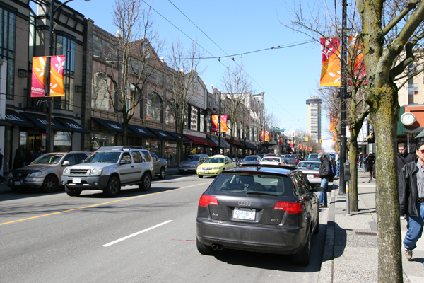 ショッピング街、ロブソン通り(Robson Street)へ行く。ブランドの店舗だけでなく、お土産屋さんやら喫茶店やらが並んでいる。日曜日だし天気がいいからだろう、人通りが多くどこのお店も混雑している。