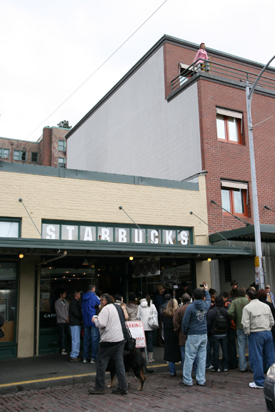 パイクプレイス(Pike Place)ではもう一箇所、有名な観光スポットがある。スターバックス(STARBUCKS)1号店だ。