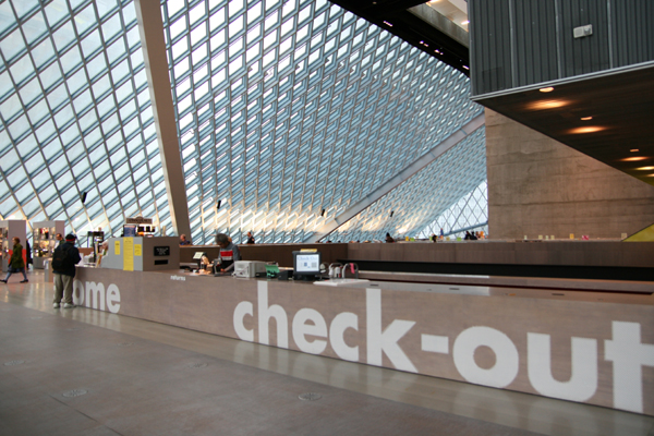 シアトル公共図書館(The Seattle Public Library)の中央図書館(Central Library)。11階建てのうち、四フロアが開架スペース。非常に広々していて、スーベニアショップもある。日本語の書籍のコーナーには10年以上前の週刊少女漫画雑誌が何冊かあったりしたが、これじゃあストーリーがわからないよなあ。インターネットも使えるようだが、利用者登録が必要なようだ。