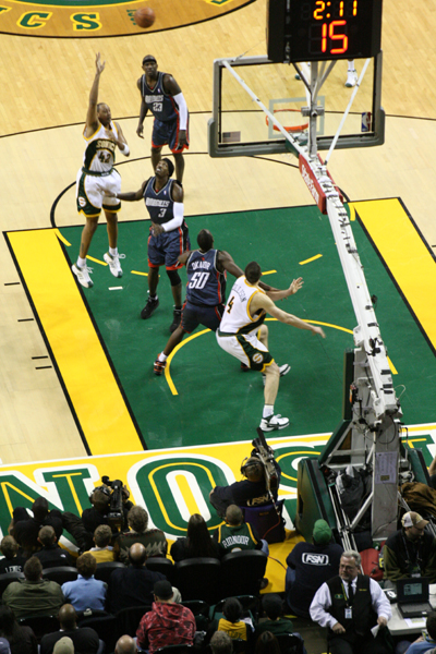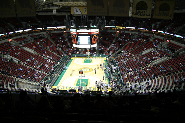 全席指定で、チケットは日本からでもチケットマスター(ticketmaster)のサイトから予約できる。手数料はかかるが、ウィルコール(Will Call)という受取方法を選べば当日現地でチケットを受け取ることができる。ただ、この試合についてはチケットの確保をしなかった。スーパーソニックスはこの時点で17勝55敗で最下位争いをしているチームで、地元のゲームでも満員になるほどの人気は無いらしい。相手のシャーロット・ボブキャッツ (Charlotte Bobcats)もアウェーの会場を満員にできるほどの人気は無いらしい。チケットマスターの空き状況を見ても十分余裕がありそうだ。何も最前列を取ろうというのではなく、現地で生観戦できればいいと思っていたので窓口で「一番安い席」を指定して購入。一人10USD(約1,000円)。