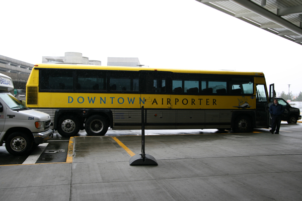 空港から市内へはバスで移動。一番安い手段は路線バスらしいが、天気が悪いので滞在するホテルの近くまで行けるグレイラインのバスを利用。市内のいくつかのホテルを循環する空港リムジンバスみたいなものだ。日本からネットででも予約できるが、私は予約していなかったのでチケット売り場を探す。空港の(多分南の)端っこにカウンターあった。が、係員がいない。隣にあった別の目的地行きのバスのカウンターにいたスタッフが奥から担当者を呼んできてくれた。降車するホテル名を尋ねられる。滞在する「W SEATTLE」は停留所に含まれていないが、フェアモントオリンピック(Fairmont Olympic)が目の前だ。一人往復17USD(約1,700円)。1USD=約100円だったので、非常に計算しやすい。バスは30分に一本運行しているが、発車直前だった。最初から係員がいれば間に合ったものを、30分待つことになった。