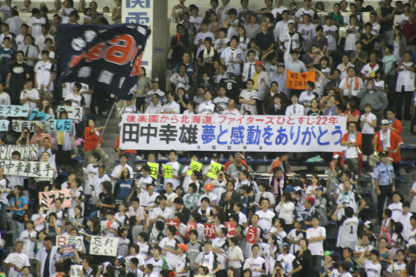 七回の裏、急に球場が沸いた。一死三塁で金子がバッターボックスへ入った時だ。ネクストバッターズサークルに田中幸雄。金子は四球で一三塁とチャンスが広がり、益々盛り上がる。