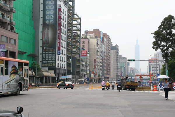忠孝新生で地上に出ると、今にも土砂降りになりそうなほど真っ暗。20分ほど歩くことになるが、それまで天気がもつだろうか。とりあえず大通り沿いの屋根がついたアーケードを歩き始める。