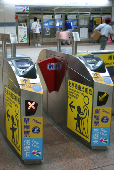 右の写真は地下鉄の改札口。タッチする場所が斜めになっている。これは普通の片道切符への配慮。深センの地下鉄のようにプラスチックのコイン型ICになっているので、改札口へ入れるときにその方が入れやすいからだろう。(深センへ行ったときの地下鉄の話はこちら)