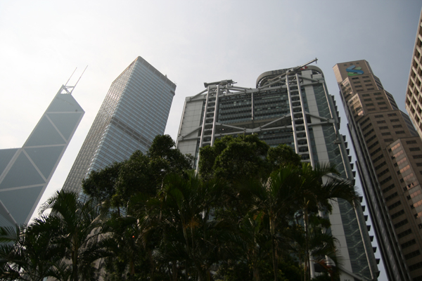 ここでは、香港ドルのお勉強よりもやはり景色が最大の関心事。さっき下から見上げていたスタチャン・HSBC・バンチャイビルが逆に見下ろせる。下から見たときは圧倒されたが、上から見下ろすとちっぽけに見える。勝手なものだ。