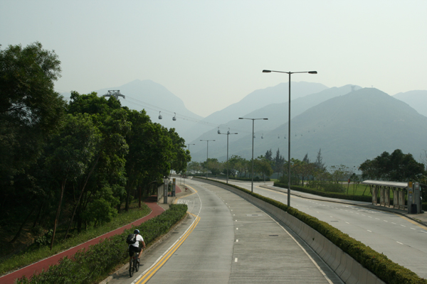 しばらく行くと、さっき着陸した空港が一望できる。残念ながら、若干霞んでいた。離着陸の頻度は羽田ほど多くは無い様子だった。条件が良いと、マカオまで見渡すことができるそうだ。