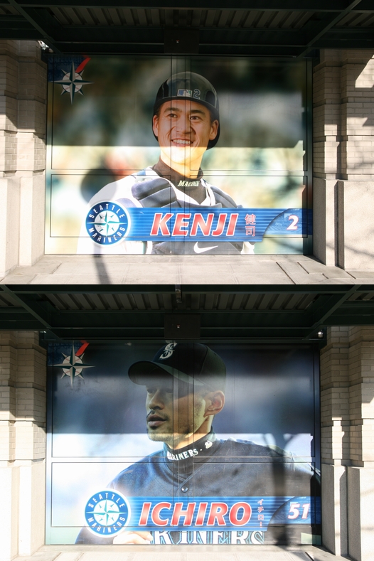 試合開始は19時だが、一時間半ほど前に球場に到着。市街地と反対側にあるチケット受取り窓口までの間、球場の壁面には城島とイチローの写真があった。日本語表記まである。日本人観光客、結構多いのだろうな。