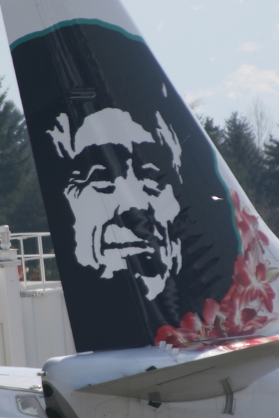 シアトル・タコマ国際空港でよく見かけたもの。イヌイットの絵が尾翼に描かれた飛行機だ。なかなかインパクトがあるこのマーク、シアトルをハブにするアラスカ航空のものだ。こっそり花のイラストがあるものとないものがある。