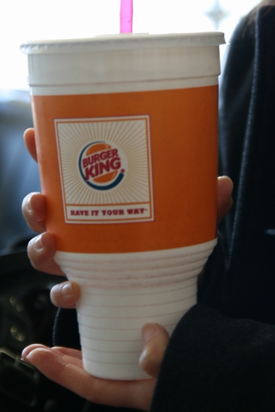 バーガーキングで特大のドリンクを目にして衝動買い。スプライト、税込で二ドル(約200円)強。ずっしり重い・・・。暑くもないのでなかなか減らないが、飲み干すまでの時間はまだまだたっぷりある。