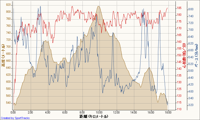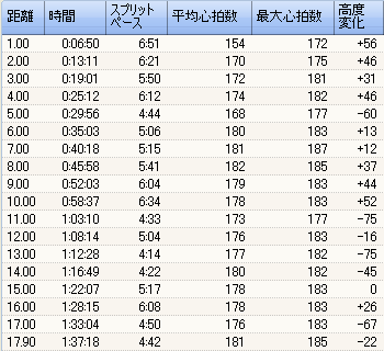 ようやく上りきって、今度こそ最後だろうとまた急坂を転げ落ちる。そのままゴールへ。タイムは1時間40分弱、また膝の痛みが発症したのが残念なところ。距離は、GPSによると18キロにも達していない。最短ルートを通ったわけでもないので、実際には17キロ半少々だろう。