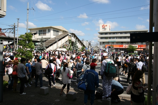 牛浜駅には予定より早く到着。よく晴れていて暑くなりそうだ。どこかの乗り換え駅で予定より早い電車に乗れたらしい。駅は昨年同様、大混雑だった。10分前の電車から降りた人がまだホーム上に残っている。私はたまたま階段の近くの車両に乗っていたのだが、それでもホームから駅前広場に出るのに5分以上かかった。みんな予定通り8時20分には牛浜駅にいたが、全員そろって会場へ向かったのは8時40分頃だった。