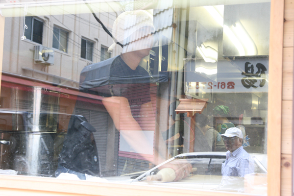 店の外からうどんを打っているところを見ることができる。最近こういううどん屋さんをさっぱり見なくなった。やっぱりうどんは打ちたてがよいね。