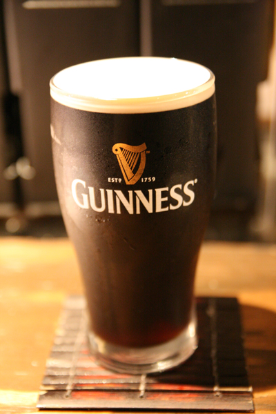 早速ギネスを。ちょうどカメラを持っているだけに、泡の上にクローバーが描かれている、なんてのを期待していたがそれはなし。それにしてもギネスの泡が好きな私としては、ちょっと泡少なすぎやしませんかね?って言いたくなったのをぐっと飲み込んだ。