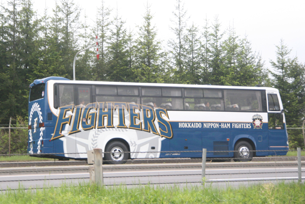 JRで札幌へ。途中、二台のファイターズバスを追い越す。さっきの飛行機で一緒だった選手を乗せたバスだろう。