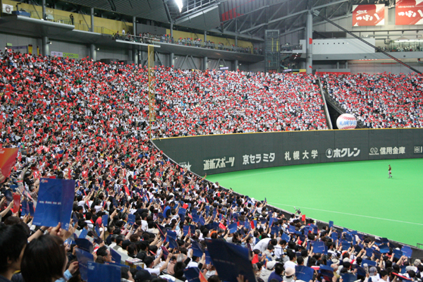 一旦実家へ帰り、食事をご馳走になって札幌ドームへ送っていってもらう。まだ開場直後なのだが、周辺はドームへ向かう人でいっぱいだった。