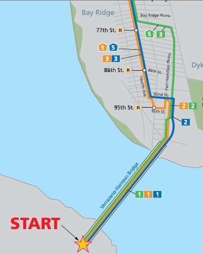 スタート地点はマンハッタンの南にあるスタッテン島(Staten Island)のフォートワズワース(Fort Wadsworth)。ここから、ニューヨーク市を構成する五つの行政区(ボロウ(borough)と言われる)すべてを通って、セントラルパークのゴールまでの42.195kmを、今年は43,000人以上が走る。